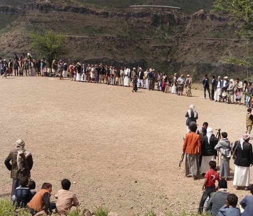 وقفة قبلية مسلحة لابناء الدائرة 197 بقرية عرام بمديرية عنس.