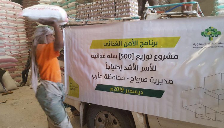 بنيان توزع 500 سلة غذائية للأسر الأشد إحتياجا بصرواح محافظة مأرب