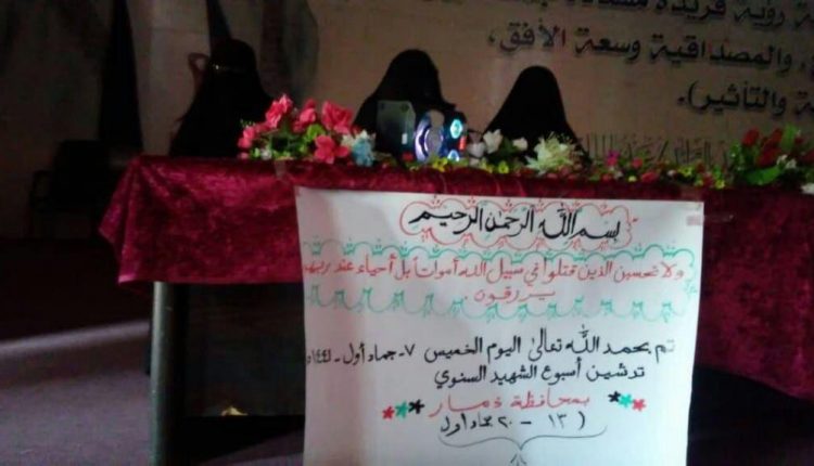 الهيئة النسائية الثقافية العامة بمحافظة ذمار…تدشن أولى فعاليات أسبوع الشهيد بأمسية ثقافية.