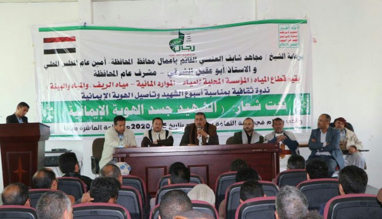 نظمت المؤسسة المحلية للمياه وفرع هيئة مياه الريف وهيئة الموارد المائية وهيئة حماية والبيئة بذمار اليوم فعالية ثقافية في الذكرى السنوية للشهيد وبرنامج تأصيل الهوية الإيمانية تحت شعار “الشهيد جسد الهوية الإيمانية”.