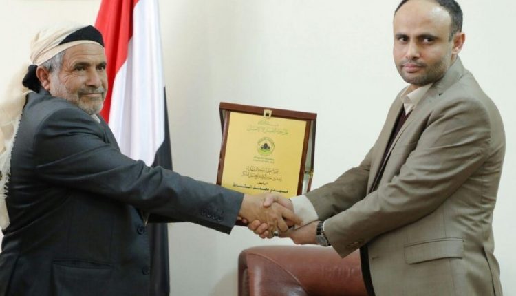 الرئيس المشاط يتسلم درع شقيقه الشهيد رفيق محمد المشاط