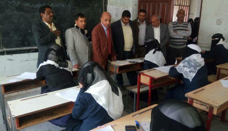وكيل وزارة التربية يتفقد سير الإختبارات التجريبية للشهادتين الاساسية والثانوية بمدارس ذمار.