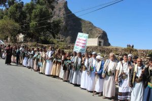 نظم أبناء مربع مخلافي رازح والسمل بمديرية عتمة محافظة ذمار اليوم وقفة مسلحة مباركة للإنتصارات التي يسطرها الجيش واللجان الشعبية والإجهزة الأمنية وأخرها عمليتي فاحبط أعمالهم والبنيان المرضوص .