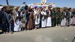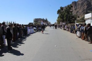 فيما قدم مشرف المربع ابو شرف المحاقري بيان الوقفة والذي عبر عن إدانته لأستمرار العدوان في إرتكاب الجرائم البشعة بحق الأبرياء اليمنيين في مختلف مناطق اليمن