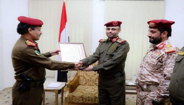 قام بتسليم الرئيس المشاط شهادة الماجستير الفخرية، وزير الدفاع اللواء الركن محمد ناصر العاطفي ورئيس هيئة الأركان العامة اللواء الركن محمد عبدالكريم الغماري وتقليده رتبة المشير الركن.