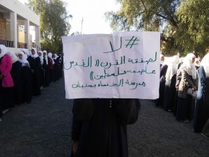 وأكدت الفعاليات والوقفات الاحتجاجية رفضها لمشاريع الهيمنة الامريكية والاستعمار الصهيوني منددة باستمرار جرائم العدوان البشعة وصفقة القرن الهادفة لتهويد القدس الشريف