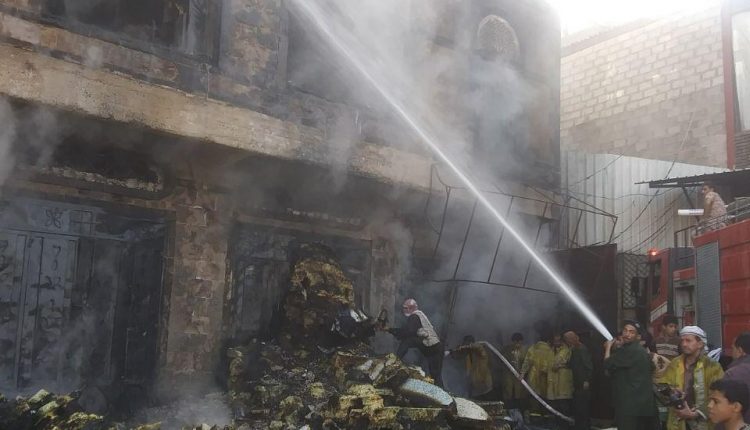 الدفاع المدني يخمد حريق في محلات تجارية بمديرية أزال