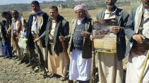 وقفة قبيلة مسلحة لتعزيز الصمود ورفد الجبهات بمديرية جبل الشرق بذمار.