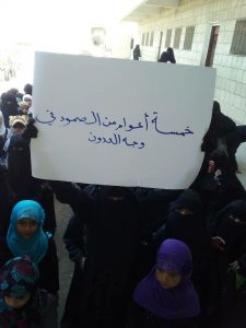 واختتمت الفعاليات بوقفات احتجاجية رفعت خلالها الشعارات واللافتات المنددة بجرائم العدوان البشعة المستمرة للعام الخامس على بلدنا وشعبنا والمستنكرة للصمت الدولي المخزي وطالبت الوقفات الأمم المتحدة بالإيفاء بتعهداتها في صرف مرتبات المعلمين والموظفين.