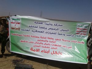 نظم اليوم الأربعاء أبناء مديرية عنس بمحافظة ذمار وقفة قبلية مسلحة مباركةً لعملية البنيان المرصوص و رفضاً القرن ودعماً للخيارات العسكرية ورفد الجبهات بالمال والرجال لتعزيز الصمود في وجه العدوان.