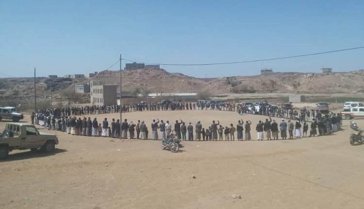 وخرجت الوقفة ببيان اكد استمرار دعم ورفد الجبهات بالمال والرجال حتى تحرير كافة مناطق اليمن من دنس الغزاة والمحتلين، مباركاً للانتصارات العظيمة المتوالية والتي أخرها عملية “فأمكن منهم ”