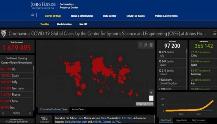 وتظهر آخر بيانات جامعة جونز هوبكينز الأمريكية التي أطلقت مشروعا خاصا بمتابعة الفيروس أن عدد ضحايا الوباء في العالم بلغ حتى اليوم الجمعة 97200 حالة وفاة.