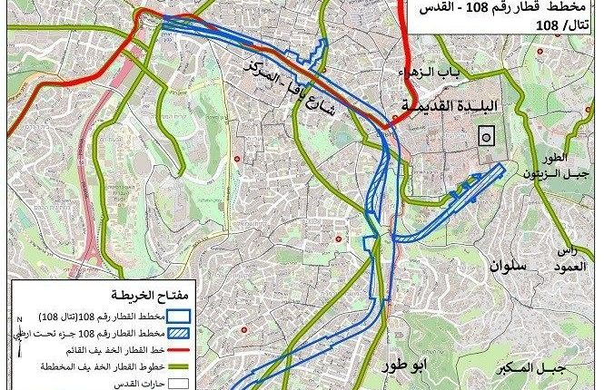 وقال المركز المختص في مجالات الأرض، والتخطيط والتنمية، إن المشروع الأول يتعلق ببناء نفق سكة حديد تحت الأرض يصل ما بين غرب القدس ومنطقة باب المغاربة وصولاً إلى تخوم المسجد الأقصى، بينما يتعلق الثاني ببناء سكة حديد فوق الأرض في أحياء القدس المختلفة.