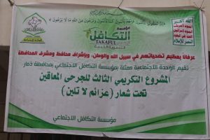بدوره مسؤول فرع مؤسسة التكافل الإجتماعي بذمار عبدالفتاح الكبسي أوضح ان المؤسسة تسعى في تقديم كل مايمكن تقديمه للجرحى وفاءً وعرفاناً للتضحيات الجسيمة التي بذلوها في سبيل نصرة الحق والمستضعفين.