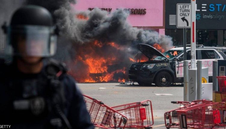في لوس أنجليس أطلق عناصر الأمن الأعيرة المطاطية واستُخدمت الهراوات لتفريق متظاهرين أحرقوا سيارة تابعة للشرطة.