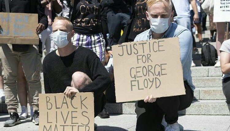وتحدى المتظاهرون من سكان لندن تدابير الإغلاق المرتبطة بفيروس كورونا، وشاركوا في مظاهرات للاحتجاج على مقتل فلويد، مرددين هتاف “لا عدالة لا سلام”، ورافعين لافتات كتب عليها “حياة السود مهمّة” خارج مجمع السفارة الأميركية.