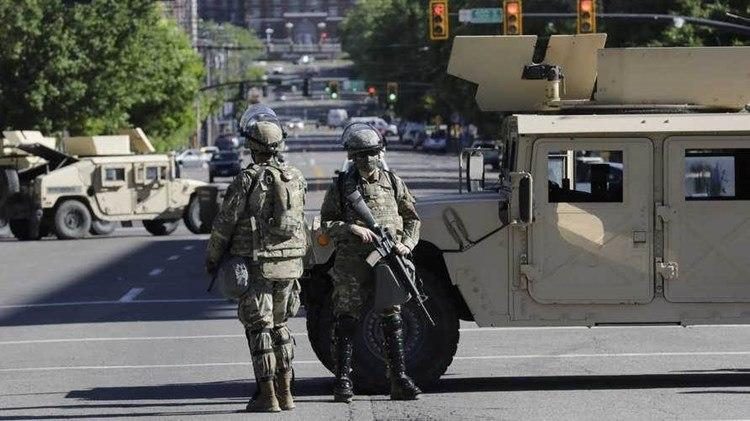وإضاف مراسلنا أن عناصر الجيش الأميركي انتشروا بالتزامن مع استمرار التظاهرات في العاصمة الأميركية واشنطن، فيما يواصل المحتجون إزالة تماثيل لرموز أميركية من الساحات العامة لارتباطها بحقبة التميّيز العنصري في أميركا.