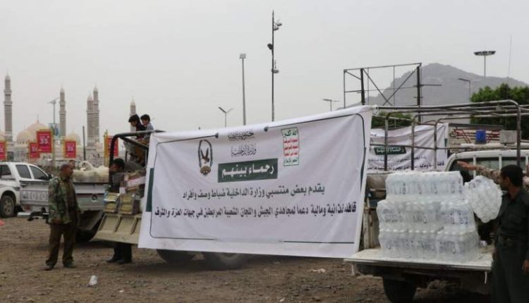 انطلقت اليوم من العاصمة صنعاء قافلة “رحماء بينهم “، التي جهزتها وزارة الداخلية كدعم وإسناد للمجاهدين من ابناء الجيش واللجان الشعبية في جبهات القتال . والتي احتوت على كمية كبيرة من المواد الغذائية والمستلزمات الطبية إضافة إلى مبالغ نقدية.