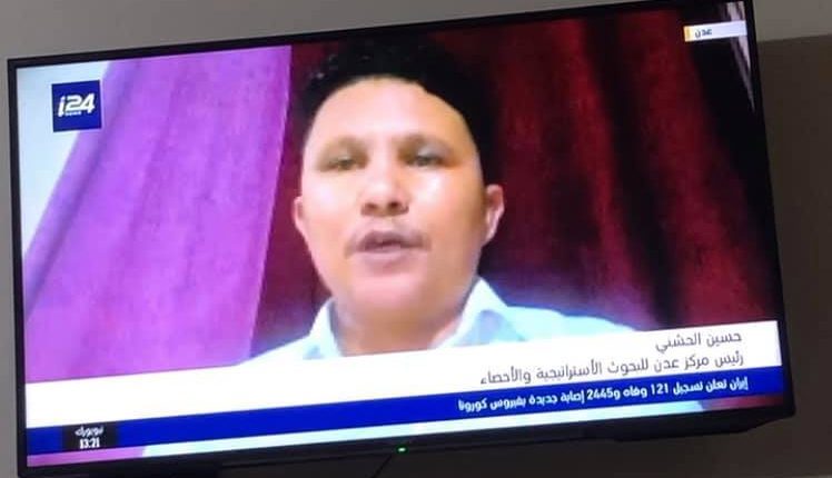 “شلوم، صورة من لقاء لي مع القناة الاسرائيلة قبل دقائق!” هذا ما نشره المسؤول الاعلامي بـ”المجلس الانتقالي الجنوبي” حسين الحنشي، على صفحته بموقع فيسبوك مرفق بصورته أثناء ظهوره على القناة الإسرائيلية “i24NEWS ” الناطقة بالعربية.