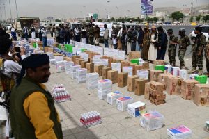 ابناء حريب بيحان وقبائل يام بصنعاء يقدمون قافله غذائية إسناداً للجيش واللجان الشعبيه