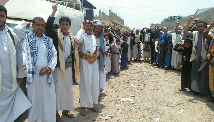 أبناء مدينة الشرق بمديرية جبل الشرق بذمار يدينون استهداف أسرة آل سبيعيان بوقفة إحتجاجية