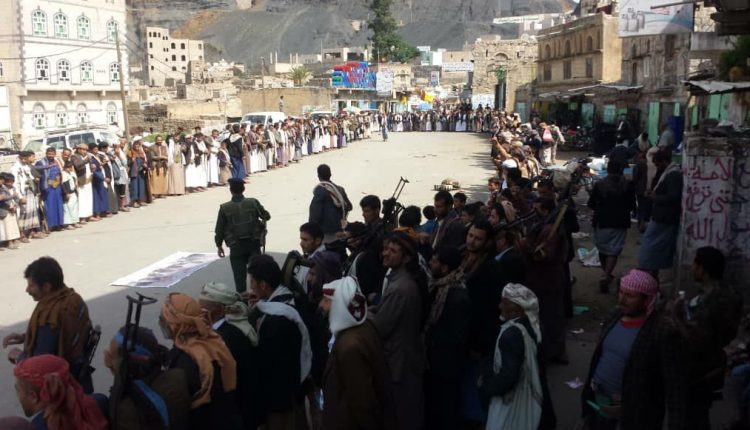 نظم أبناء قبيلة مسور بمحافظة عمران ، اليوم الخميس، وقفة قبلية رفضا واستنكارا للجريمة البشعة التي ارتكبها مرتزقة العدوان بحق أسرة آل سبيعيان بوادي عبيدة بمحافظة مأرب.