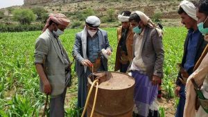 دشن مكتب الزراعة والري بمحافظة ذمار اليوم مبادرة مجتمعية لمكافحة دودة الحشد الخريفي في حقول الذرة بقاع الحقل وقاع جبهان بمديرية ضوران آنس.