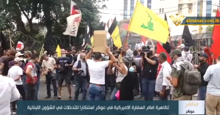 تشهد العاصمة اللبنانية في هذه الأثناء مظاهرة للمنظمات الشبابية والطلابية في الاحزاب اللبنانية وذلك امام السفارة الاميركية في عوكر شمال بيروت استنكارا للتدخل الاميركي في الشؤون اللبنانية وتضامنا مع الشعب الاميركي ضد العنصرية التي يواجهها على اراضيه.