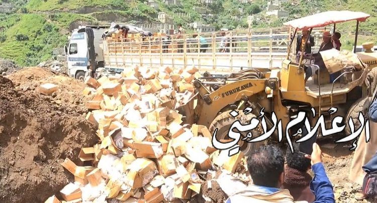 بحضور أمني وقضائي.. إتلاف 37 طن من المواد الغذائية الفاسدة التابع لبرنامج الغذاء العالمي في إب