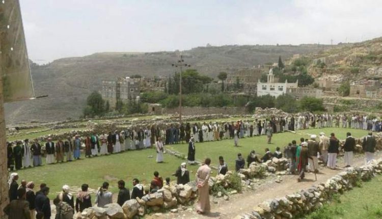 نظم أبناء وقبائل الأشمور بمحافظة عمران، اليوم الجمعة، وقفة قبيلة مسلحة استنكارا للجرائم الوحشية التي يرتكبها العدوان السعودي الأمريكي بحق الشعب اليمني.