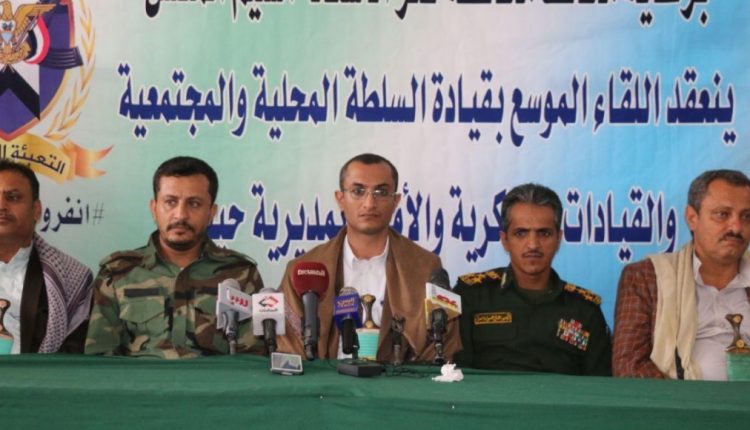 كما عبرا عن تقديرهم لجهود المحافظ واهتمامه بحيفان، مؤكدين وقوفهم الكامل الى جانبه في العمل على مشروع الرئيس الشهيد الصماد والمتمثل بشعار” يد تحمي ويد تبني”، وكذا مساهمة الشئون الإنسانية ورجال الخير في دعم عدد من المشاريع الخدمية بالمديرية.. معلنين استمرار أبناء مديرية حيفان بتقديم الواجب الوطني المقدس ورفد الجبهات بقوافل العطاء وكتائب الرجال الأشداء حتى تحقيق النصر.