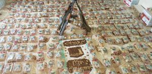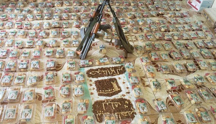 احتوت القافلة على مواد غذائية متنوعة وعيدية من الزبيب والعصائر والكعك والحلويات والجعالة العيدية .