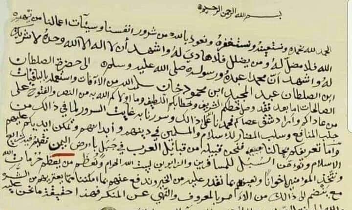 سربت تركيا وثيقة تاريخية تثبت بأن جنوب المملكة العربية السعودية ملكاً لليمن بالكامل وأن السعودية محتلة لجزء كبير من شمال اليمن.