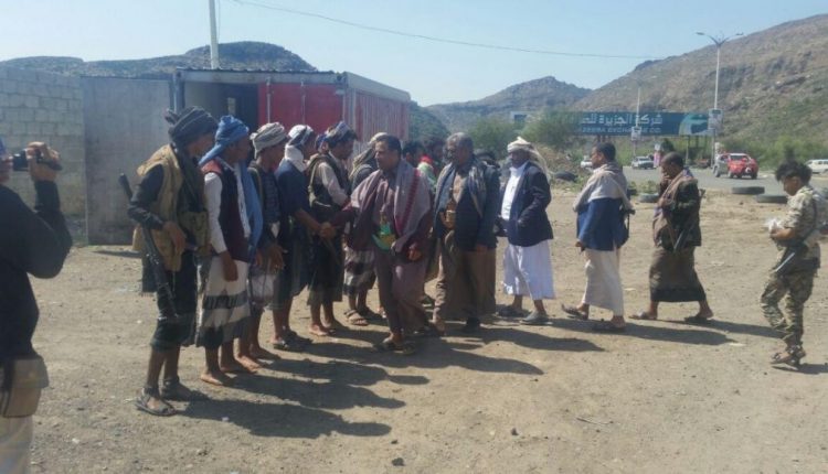 زار وفد من السلطة المحلية بمحافظة تعز والمكتب الاشرافي لأنصار الله يتقدمهم وكيل محافظة تعز الاستاذ / محمد هزاع الحسيني. , المرابطين في جبهة تبيشعة بمديرية صبر الموادم.