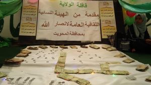 كما اختتمت الفعالية باطلاق قافلة مالية من قبل الهيئة النسائية الثقافية العامةبمحافظة المحويت لرجال الله في الجبهات احتفاءوعيدية وابتهاج بعيد الغدير