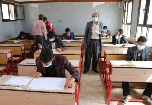 دشن نائب وزير التربية والتعليم رئيس اللجنة العليا للاختبارات الدكتور همدان الشامي وأمين عام محلي محافظة ذمار مجاهد العنسي اليوم اختبارات الشهادة العامة الثانوية للعام الدراسي 2019 – 2020م.