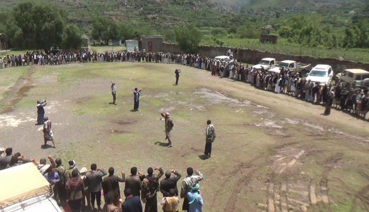 أقيمت في عزلة بني سبأ بمديرية القفر محافظة إب وقفة قبلية حاشدة تنديدا بالتطبيع مع الصهاينة .