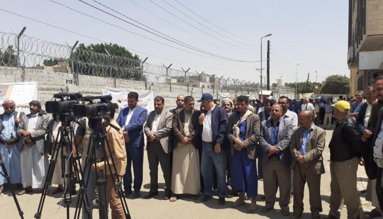 وقفة لمؤسسة مياه ومكتب كهرباء أمانة العاصمة تنديدا باحتجاز السفن النفطية