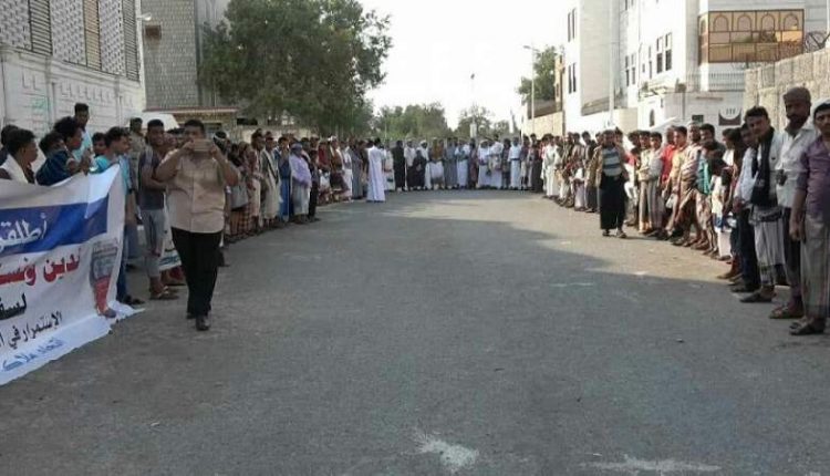 وقفة لشركة النفط واتحاد وكلاء المحطات واللجان النقابية بالحديدة تنديدا باحتجاز سفن النفط