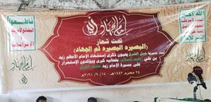 نظم اليوم الاثنين أبناء مديرية جبل الشرق فعالية ثقافية وخطابية حاشدة بمناسبة ذكرى استشهاد الإمام زيد عليه السلام للعام 1442هـ تحت شعار “البصيرة البصيرة ثم الجهاد” .