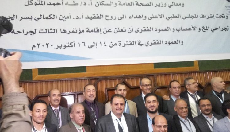 أٌشهر بصنعاء ، اليوم الخميس، المؤتمر اليمني العلمي الثالث لجراحة المخ والأعصاب والعمود الفقري، والذي ستنظمه الجمعية اليمنية لجراحي المخ والأعصاب والعمود الفقري والمجلس الطبي الأعلى خلال الفترة 14-16 أكتوبر المقبل.
