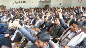 نظمت جامعة ذمار والملتقى الأكاديمي وملتقى الطالب الجامعي اليوم فعالية خطابية بمناسبة العيد السادس لثورة 21 سبتمبر ومرور ألفي يوم من الصمود في وجه العدوان.
