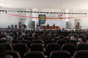 إحتفى اليوم الاثنين أبناء محافظة ذمار بقاعة فلسطين بجامعة ذمار بمناسبة الذكرى السادسة لثورة 21 سبتمبر بمهرجان إحتفالي تحت شعار “تحرير القرار وتصحيح المسار”