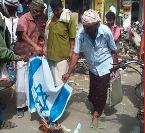 وأحرق المحتجون العلم الإسرائيلي وسط هتافات وشعارات منددة بالتطبيع الإماراتي مع الكيان الاسرائيلي، مؤكدين مناصرتهم للشعب الفلسطيني باعتبار القدس قضية مركزية لكل الأمة .
