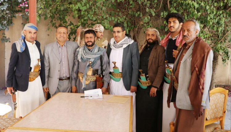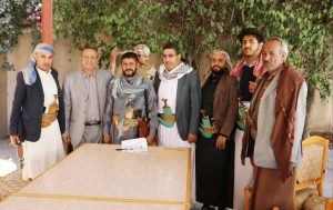 كرم مشائخ ووجهاء آل غشيم ومخلاف حمير والسلف في مديرية ضوران اليوم، محافظ ذمار محمد ناصر البخيتي،لدورة في متابعة قضية الشهيد الرائد محمد علي غشيم الذي تم تصفيته في سجون المرتزقة بالساحل الغربي .