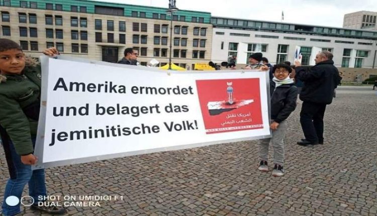 وقفة احتجاجية أمام السفارة الأمريكية في برلين تنديدا بجرائم العدوان على اليمن