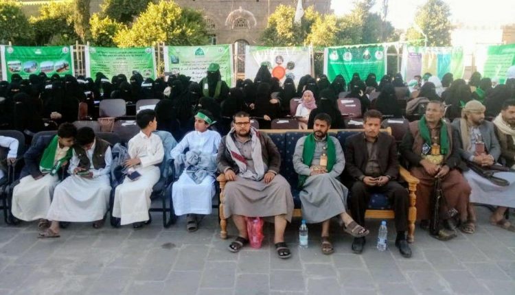 من جانبها أكدت ممثلة مؤسسة الشهداء امة العليم السوسوة، أن الاحتفاء بذكرى المولد النبوي في ظل الظروف الراهنة رسالة للعدوان أننا أمة متمسكة برسولها ورسالته ..مشيرةً إلى أهمية استلهام الدروس من حياة النبي في نصرة الحق ومواجهة الباطل والعدوان .