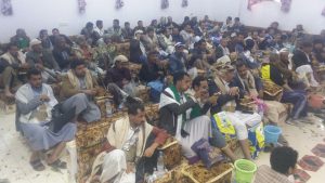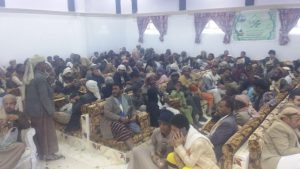 وفي الفعالية التي حضرها مدير الأمن الوقائي بالمحافظة أبو حيدر، مطهر، وعضو اللجنة الإشرافية للحشد جبر النهمي، ومدراء المكاتب التنفيذية، وعدد من أعضاء المكتب الإشرافي والسلطة المحلية، والمشائخ والشخصيات الإجتماعية والمواطنين وأحفاد بلال، شدد مسؤول لجنة الإنصاف بالمحافظة، ورئيس اللجنة الإشرافية للحشد بالمديرية القاضي حسن عقبات على ضرورة التنبه للمخططات التي تحاك ضد الإسلام والمسلمين من قبل أعداء الأمة من اليهود والنصارى ومن ساندهم اعراب الخسة والنفاق المتربصين بالدين المحمدي ورسالته الخالدة.
