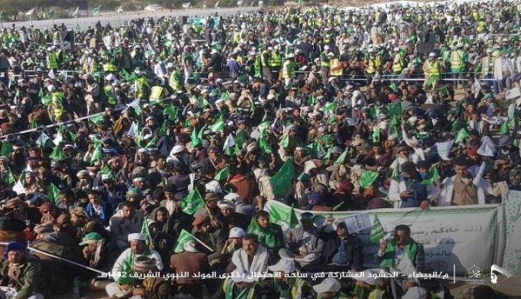 احتشد أبناء محافظة البيضاء، اليوم الخميس، بساحة الاحتفال المركزية بمديرية السوادية بمناسبة ذكرى المولد النبوي الشريف على صاحبه أفضل الصلاة وأزكى التسليم.