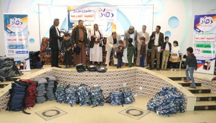 توزيع حقائب مدرسية على 770 طالباً وطالبة بذمار